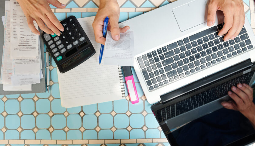 une personne travaillant des chiffres comptable sur un ordinateur